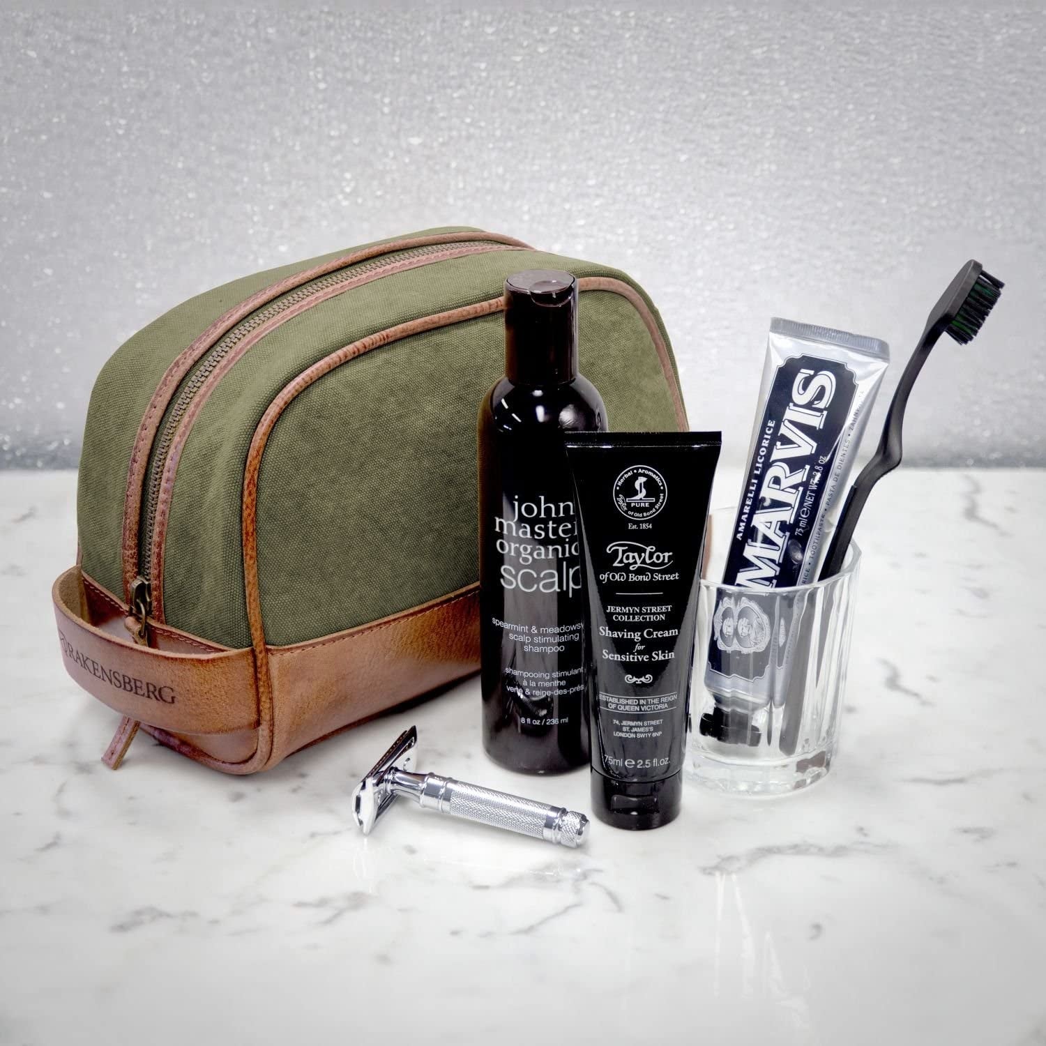 Ein besonderes Geschenk: Kulturbeutel aus Leder und Canvas von DRAKENSBERG