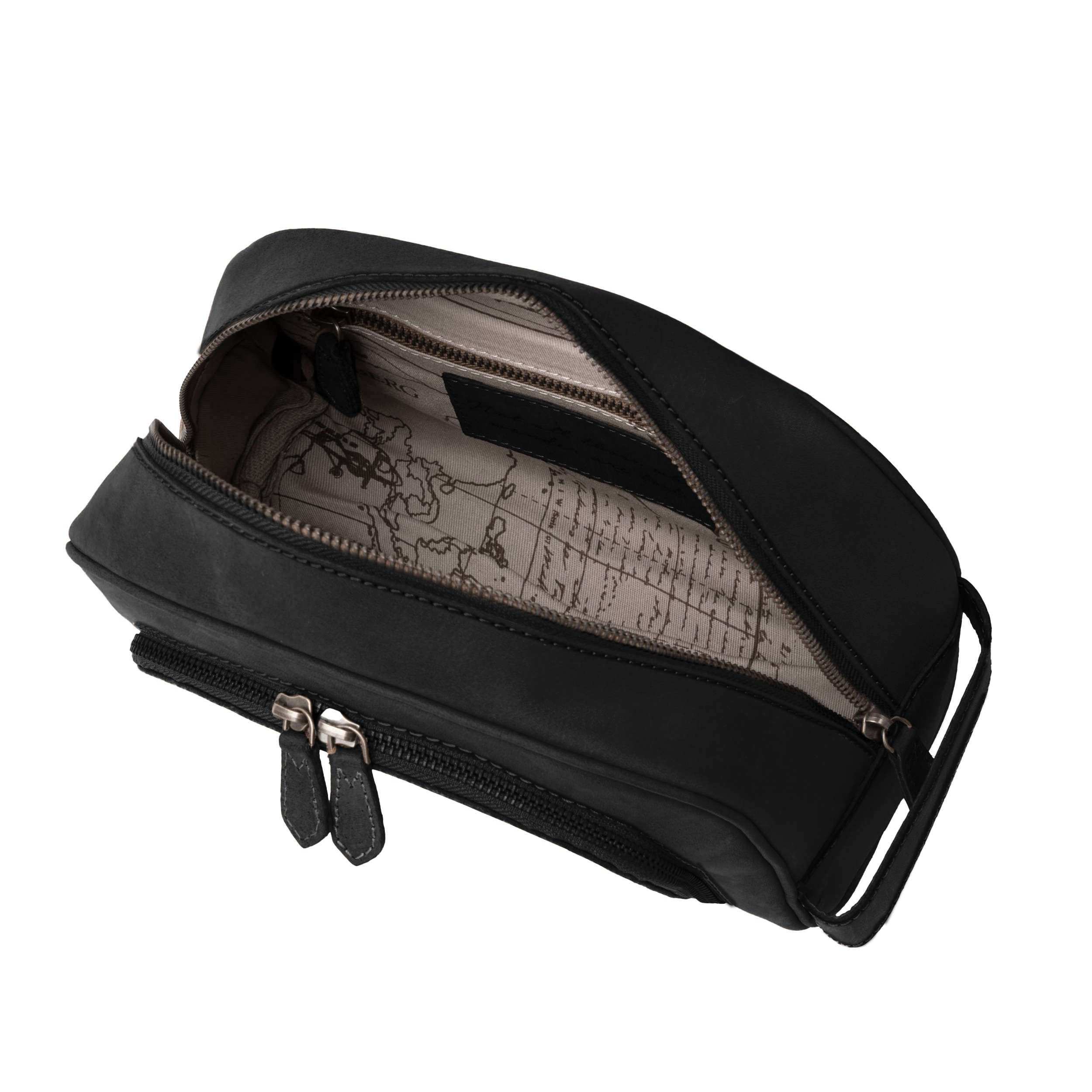 The leather toiletry bag in a vintage look can be opened with a long zipper, making it very easy to fill. The wash bag has two practical zippered compartments on the outside. Inside, 2 practical storage compartments and another zipper help to keep things tidy.