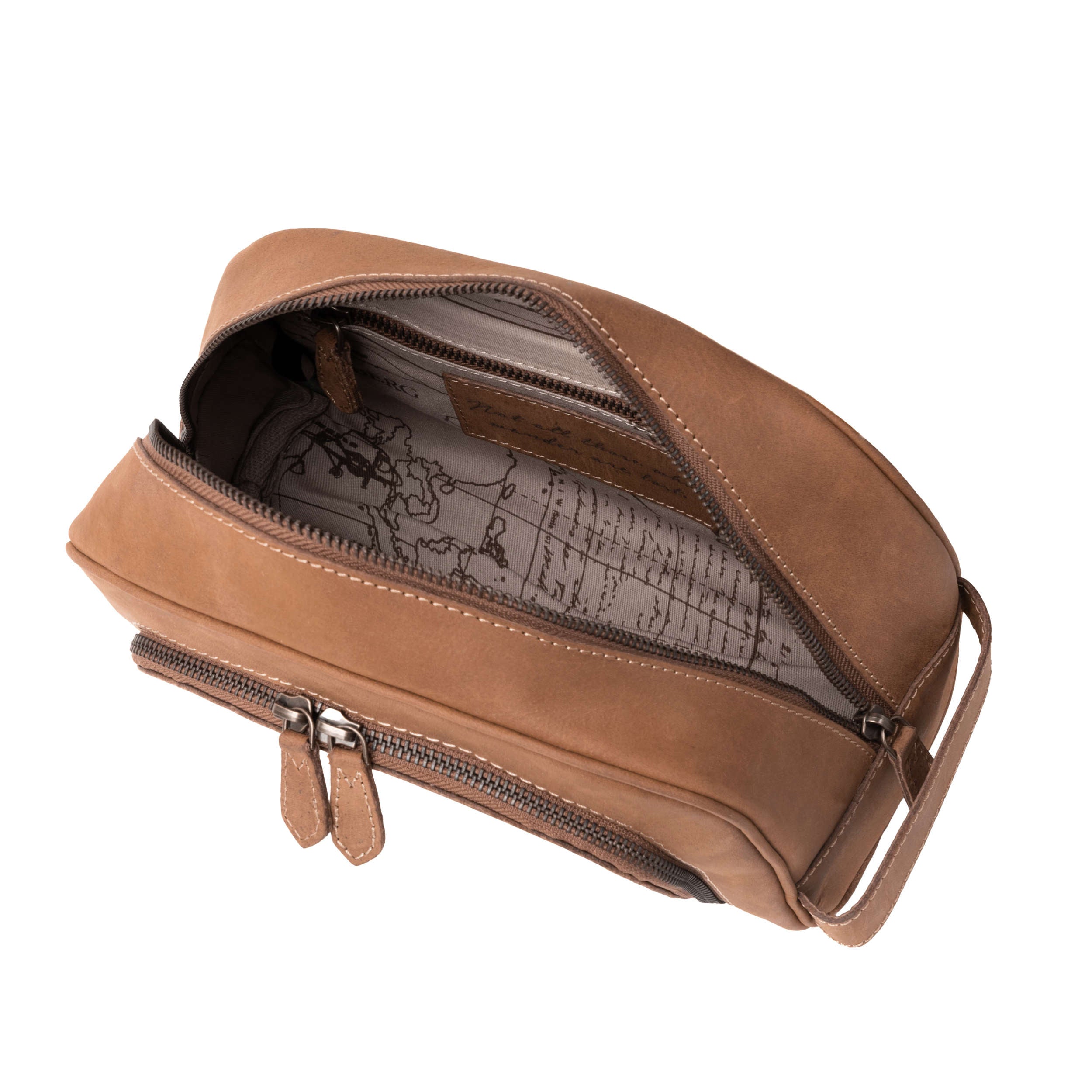 This classic form of toiletry bag has existed for centuries and the classic leather toiletry bag has always been an indispensable accessory for traveling ladies and gentlemen. Our "Ben" toiletry bag made of robust leather follows this tradition and offers plenty of space for shaving equipment and cosmetics. Thanks to its compact size and low weight, the toiletry bag takes up very little space in your luggage.