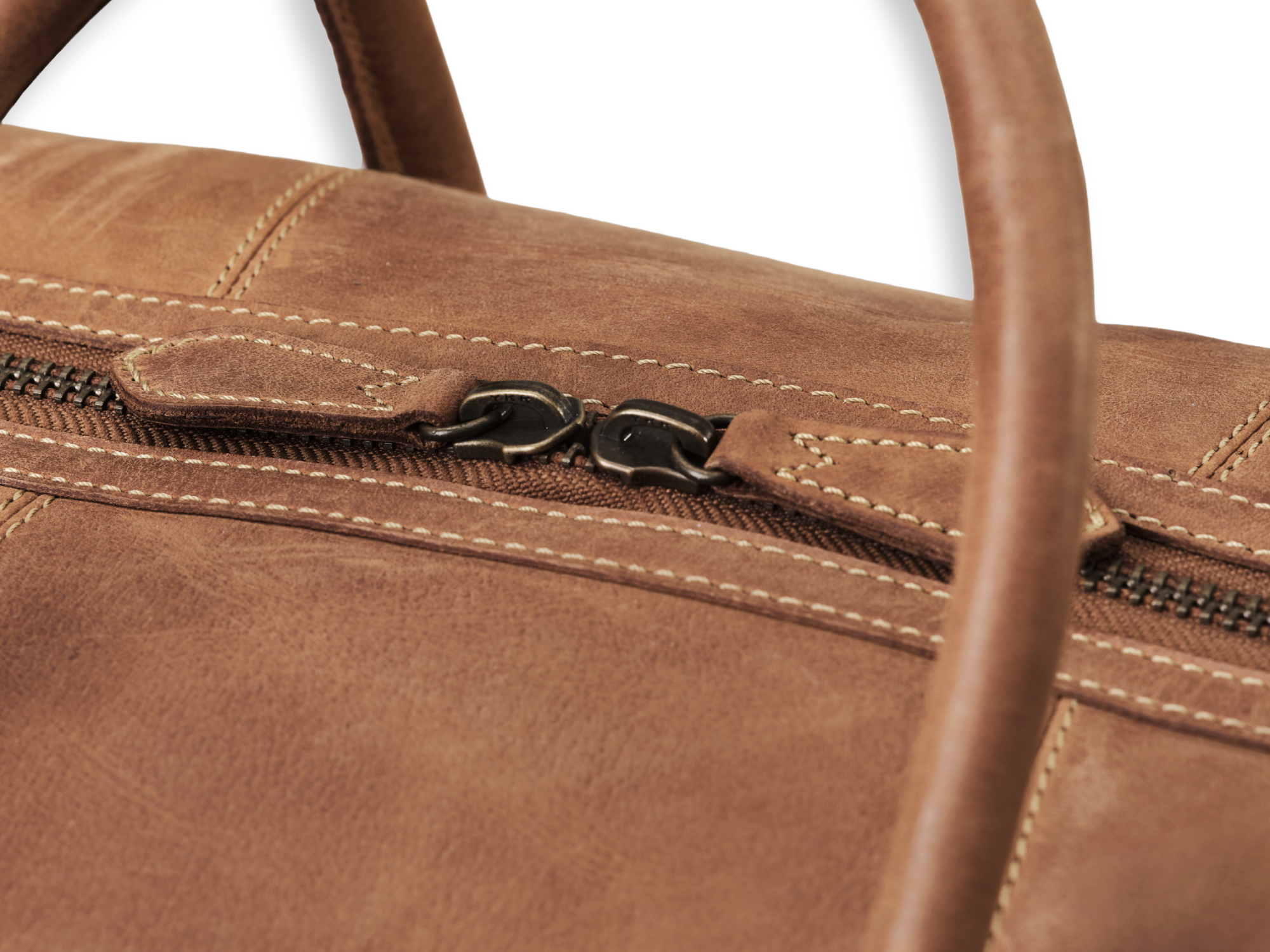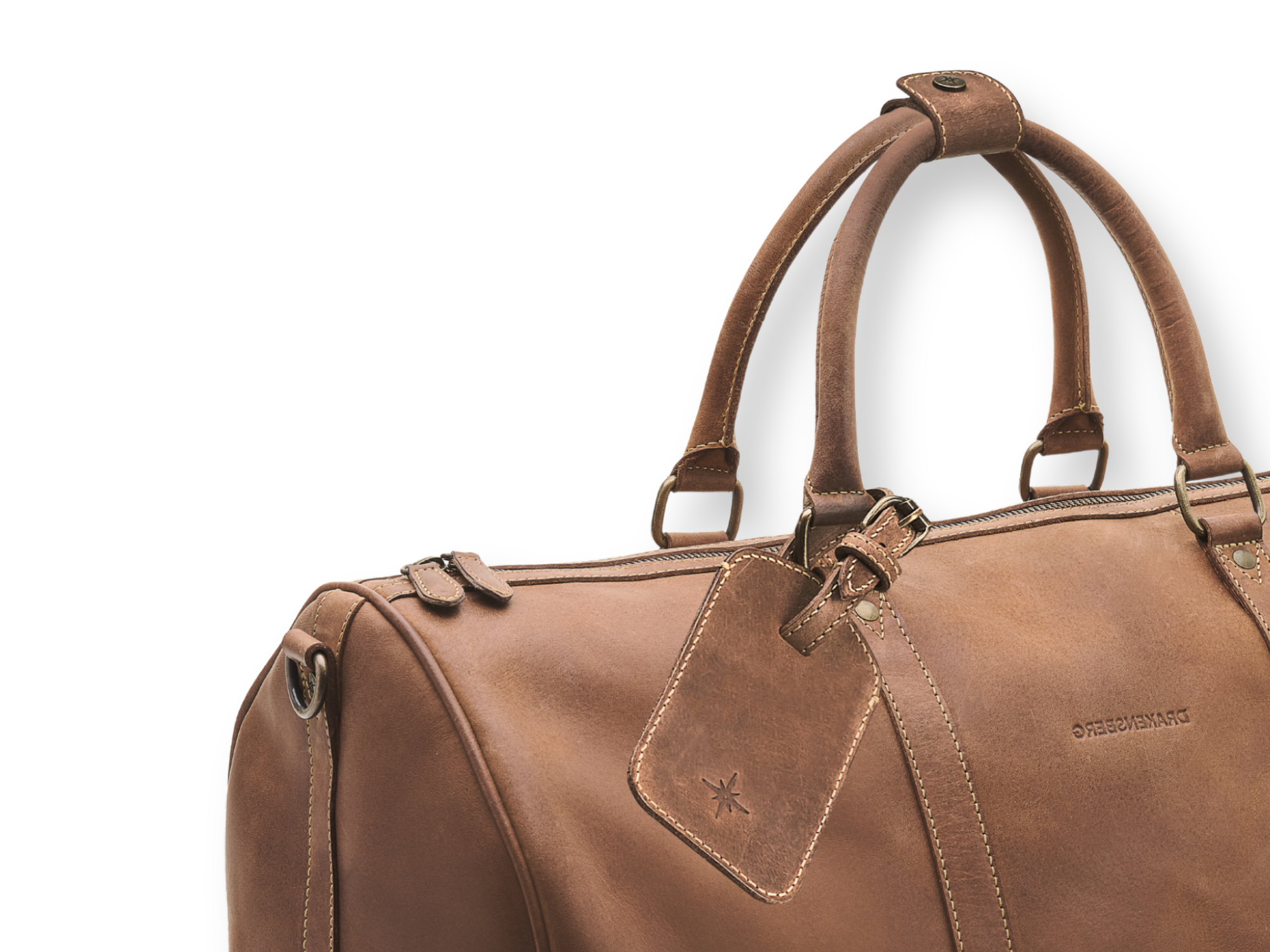 Built to last: The "David" weekender combines classic design with special constructions engineered for maximum durability. For maximum resilience: The weekender's handles feature a particularly sturdy construction – stitched multiple times, additionally riveted, and attached to a generous leather reinforcement. This traditional craftsmanship detail ensures that the bag can be carried safely and comfortably, even when fully loaded.