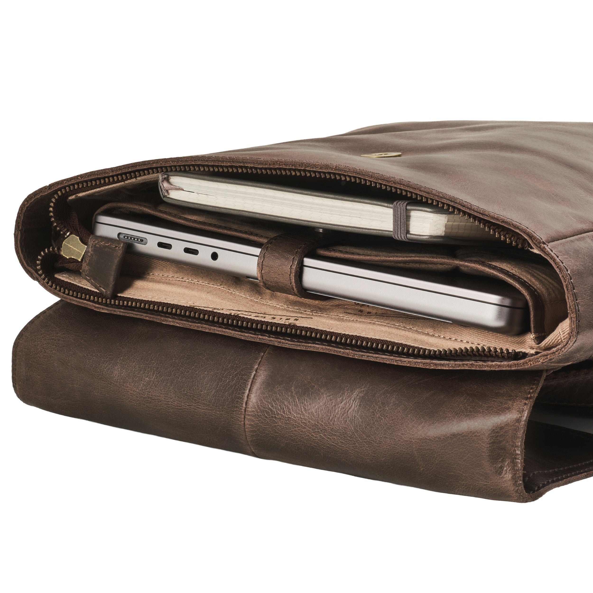 Während der britischen Ära in Indien blühte das traditionelle Täschnerhandwerk auf. Die Verschmelzung britischer Designs mit indischer Handwerkskunst führte zu hochwertigen Ledertaschen aus robustem, vegetabil gegerbtem Büffelleder, auch bekannt als Hunter-Leder, das für seine charakteristische Narbung bekannt ist. In unserer Kollektion verwenden wir genau dieses besondere Material, um einen hochwertigen und authentischen Look zu erzeugen. Das langlebige Hunter-Leder entwickelt mit der Zeit eine wunderschöne Patina, die jeder Tasche eine einzigartige und persönliche Note verleiht.
