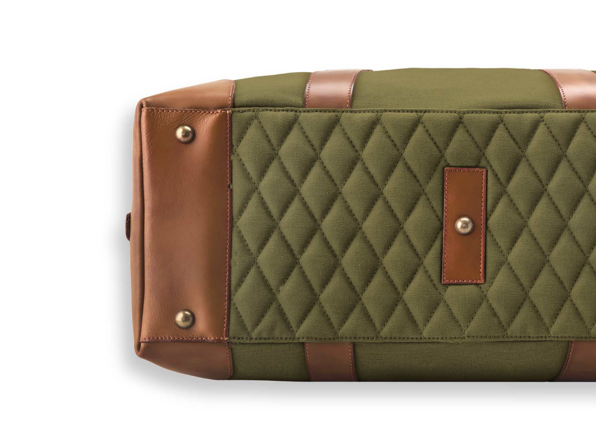 Die Tasche ist hochwertig verarbeitet, alle äußeren Verschleißpunkte sind mit Leder eingefasst, und stark beanspruchte Stellen sind verstärkt. Die Unterseite ist gepolstert und im edlen »Diamond-Stitch«, einem DRAKENSBERG Signature-Detail, abgesteppt.